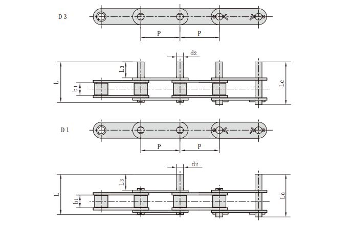 不銹鋼雙節距加長軸輸送鏈