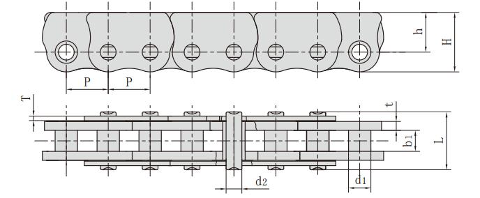 鏈號 節距 套筒直徑 內節內寬 銷軸直徑 銷軸長度 鏈板尺寸 抗拉強度