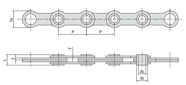 鏈號 節距 鏈板組合 鏈板高度 鏈板厚度 銷軸直徑 銷軸長度 抗拉強度 平均抗拉強度 每米重量