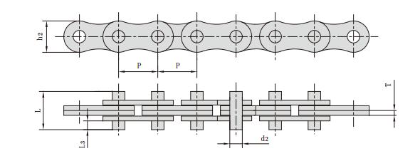 鏈號 節(jié)距 鏈板高度 鏈板厚度 銷軸直徑 銷軸長度 抗拉強度 平均抗拉強度 每米重量