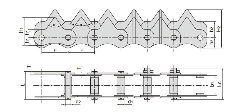 鏈號 節(jié)距 滾子直徑 內節(jié)內寬 銷軸直徑 銷軸長度 齒形角 鏈板厚度 鏈板尺寸 抗拉強度 平均抗拉強度