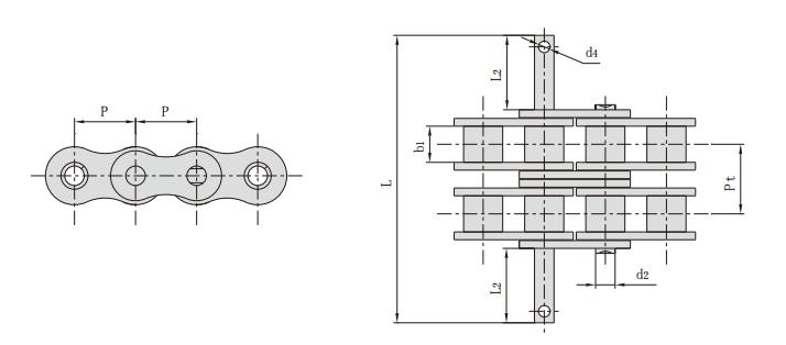 鏈條型號(hào) P b1 d2 d4 L2 L Pt