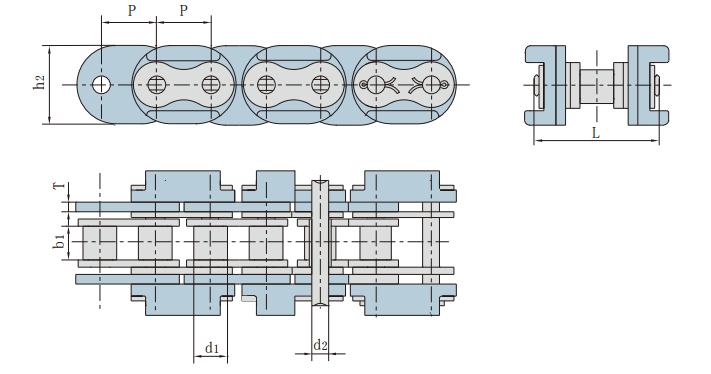 鏈號 節距 滾子直徑 內節內寬 銷軸直徑 銷軸長度 附板、鏈板尺寸 抗拉強度 每米長重