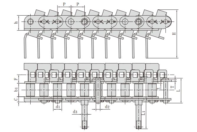 P d1 b1 d2 d3 L L1 h t/T H F C Q